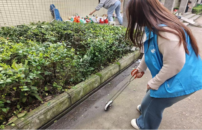 志愿者们带上要用的劳动工具,来到自己负责打扫的区域,他们三俩一组、分工明确。在教学楼里,草坪上,马路旁,都有他们的身影。他们互相帮忙,一起配合,认真仔细地打扫每一个地方。每个人都用心投入到清扫工作中,用实际行动美化校园,用自己的努力守护着身边的环境。