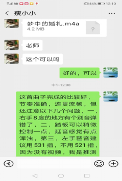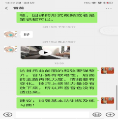 图3:曾强老师通过微信与南岳学院专业生进行钢琴作品《梦中的婚礼》的指导。