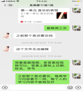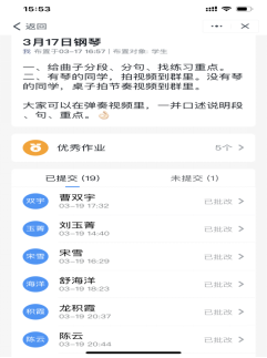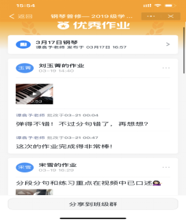 图9:郑茜老师通过学习通让基础钢琴学生完成了网络课堂作业。