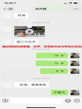 图5:侯克娜老师通过微信与南岳学院17级专业生吴燕卿进行钢琴作品指导。