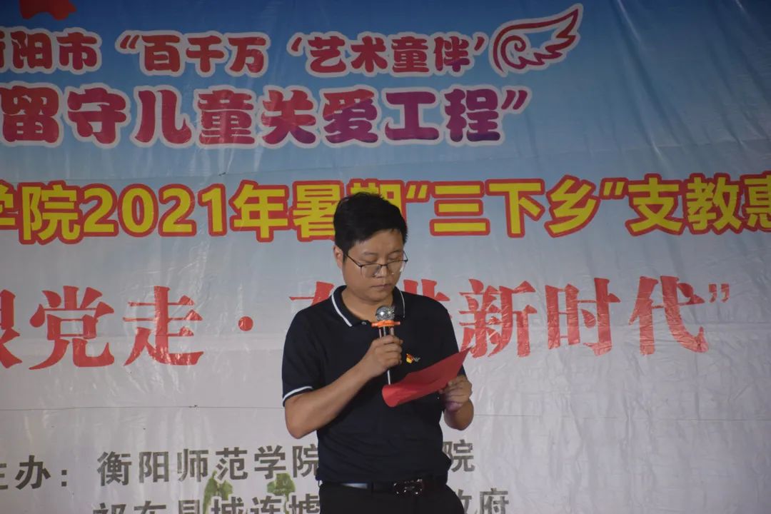 2021年7月12日晚,伟德国际1949三下乡支教惠民汇演于城连墟乡隆重举行。莅临本场汇演的领导嘉宾有衡阳师院伟德国际1949党总支书记朱志红、党总支副书记陈雅斐。祁东县委宣传部一级主任科员周建桥、祁东县城连墟乡党委书记胡文波、祁东县城连墟乡乡长罗映、祁东县教育局青少年学生校外活动中心负责人周斐、祁东县城连墟乡党委副书记陈志红、祁东县城连墟乡人大主席周盛红 、祁东县城连墟乡教管办主任李仁秋。